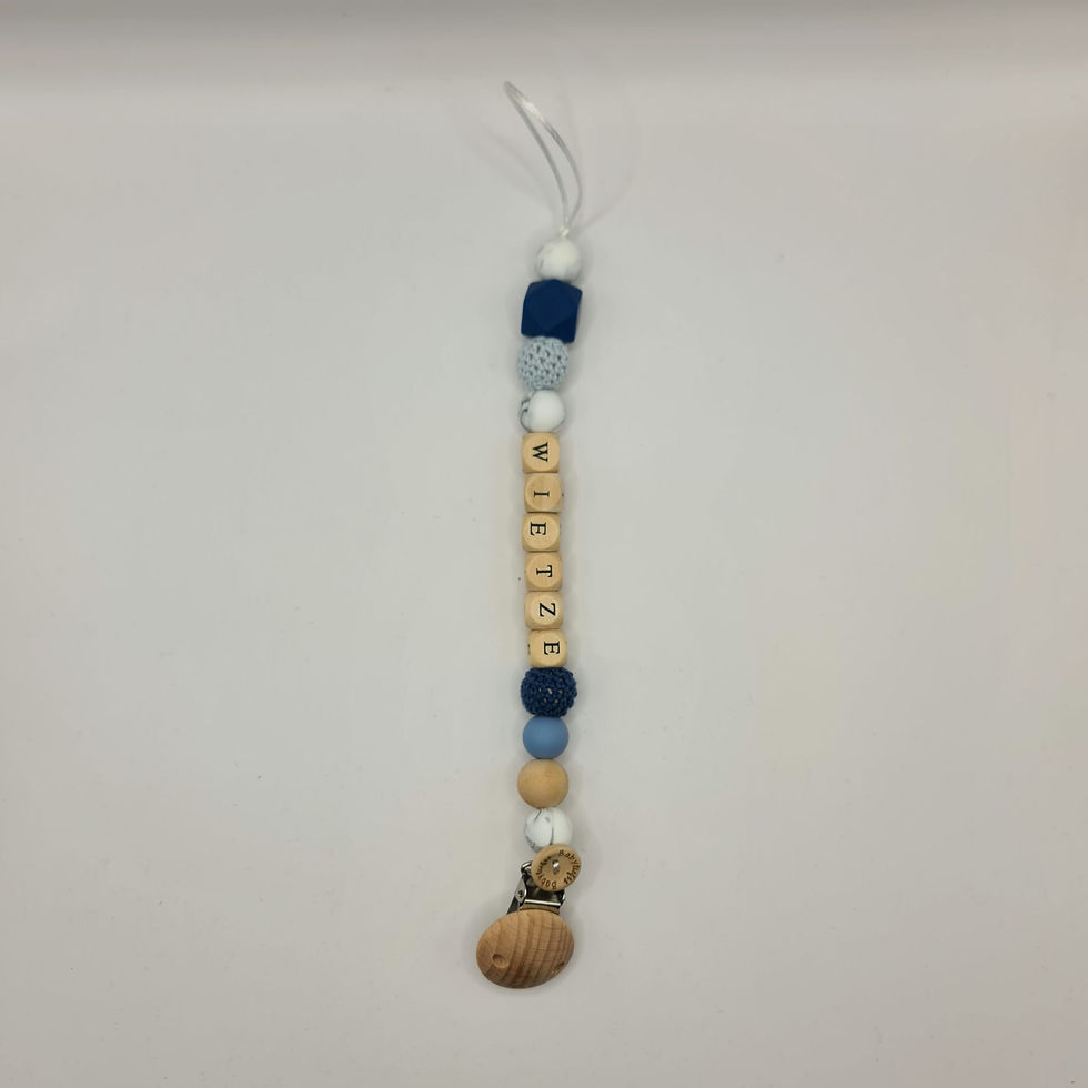 Speenkoord met naam - (Konings)Blauw Wit Hout